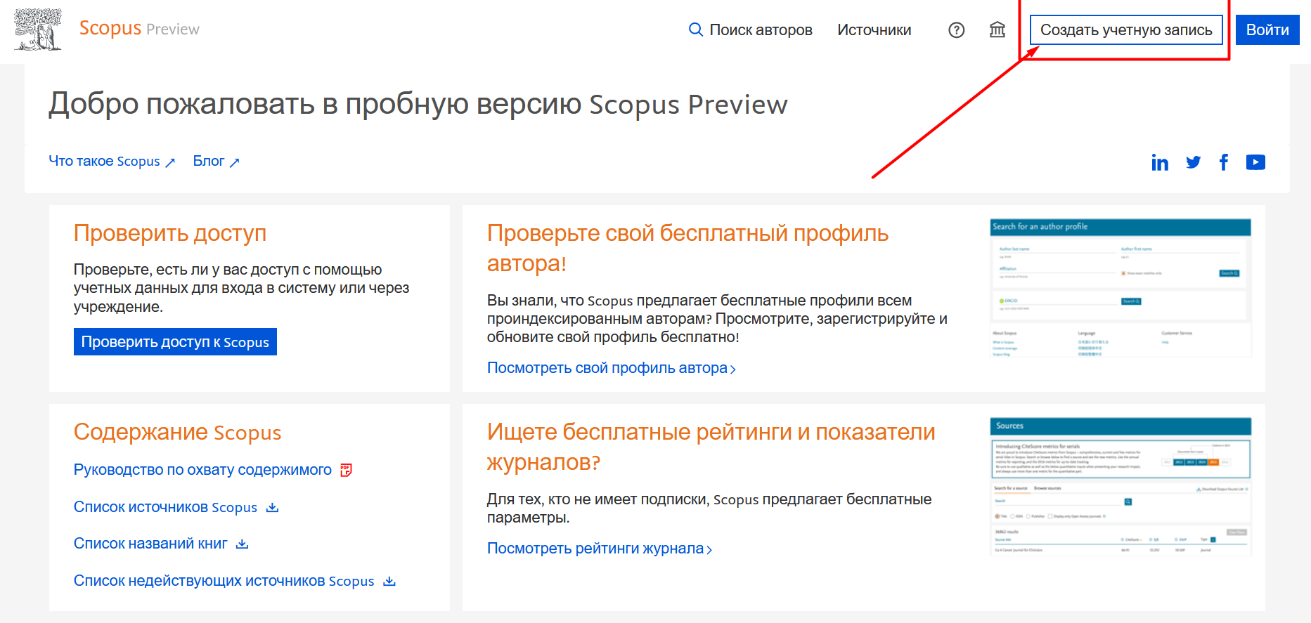 Покрокова інструкція, як створити акаунт у Scopus: щоб скористатися всіма перевагами бази даних Scopus, вам потрібно створити особистий акаунт. Реєстрація безкоштовна і займає всього кілька хвилин.